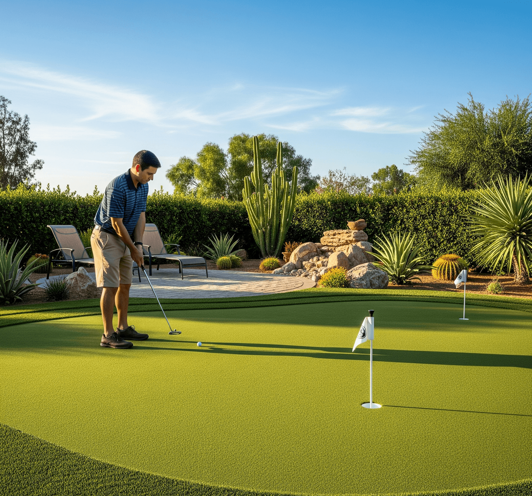A backyard putting green made from artificial turf is not only a great way to improve your golf skills, but it also enhances your outdoor space, making it a unique spot for entertaining friends and family. Whether you’re a seasoned golfer or just looking for a fun addition to your backyard, artificial turf allows you to create a custom green that fits your space and style. With expert installation, your putting green will look and play great for years to come, turning your backyard into the ultimate destination for relaxation and recreation.